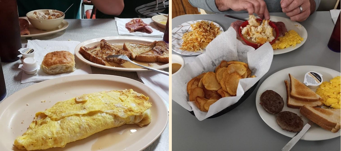 The Hungry Man breakfast plate is a local favorite. The pancakes and French toast are also popular. Don't miss the BBQ sandwich for lunch!